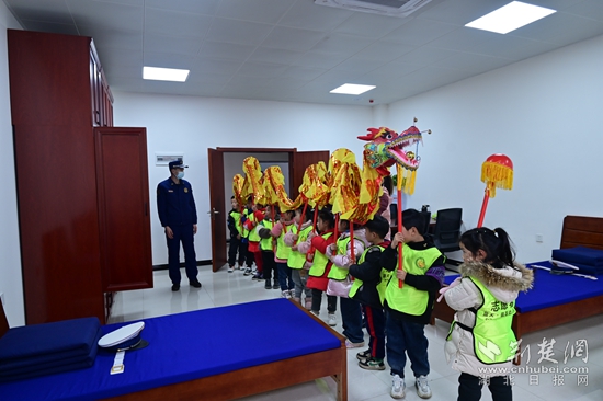 荊楚網(wǎng)(湖北日?qǐng)?bào)網(wǎng))訊(通訊員耿偉鵬)在傳統(tǒng)元宵佳節(jié)即將到來(lái)之際,2月3日下午,黃石市西塞山區(qū)藍(lán)天銀晶幼兒園師生代表組建的舞龍隊(duì)來(lái)到了西塞山區(qū)八泉消防站參觀學(xué)習(xí),與消防指戰(zhàn)員共度元宵佳節(jié)。