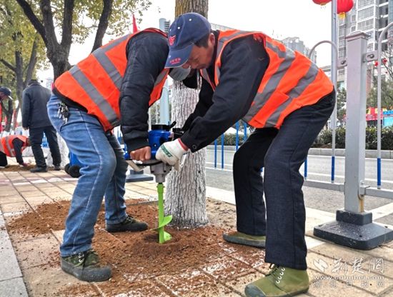 荊楚網(wǎng)(湖北日報網(wǎng))訊(通訊員 鄭新華 陶晶晶 楊宏?。?/strong>“我們采購了6臺打孔機,可以把肥料直接送到樹木的根部,利于樹木直接吸收。當夏季高溫季節(jié)來臨,可以通過插管給樹木灌水補充水分。”2月13日,麻城市金橋大道主干道,技術(shù)人員在推進城市道路綠化提升工程現(xiàn)場作業(yè)時向筆者介紹。
