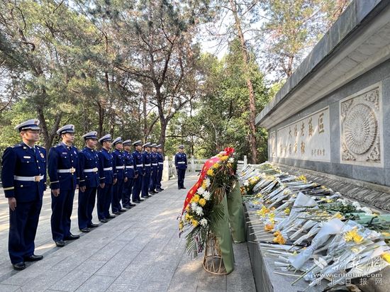 在大冶市青龍山烈士紀念碑前,消防員向烈士敬獻鮮花,拂去烈士紀念碑上的輕塵并集體鞠躬默哀,深切表達對革命先烈的敬仰、哀思之情。全體消防救援人員嚴正肅穆,認真聆聽每一句紅色故事、感悟每一個場景,從先烈們艱苦卓絕的凜然斗志和英雄慷慨的氣魄中,汲取新時代“火焰藍”的奮進力量。