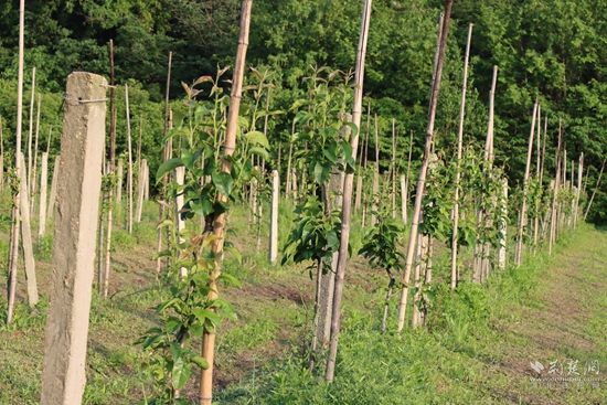 如按照長(zhǎng)、中、短結(jié)合,以短養(yǎng)長(zhǎng)、多種經(jīng)營(yíng)、效益互補(bǔ)的方法逐年逐步完善農(nóng)場(chǎng)的建設(shè);選擇與其他品種錯(cuò)峰上市、人力成本更低的桃、梨品種;采取獲得湖北省自然基金的梨樹(shù)種植最新技術(shù)“雙臂順行式”新型棚架栽培技術(shù)種植。