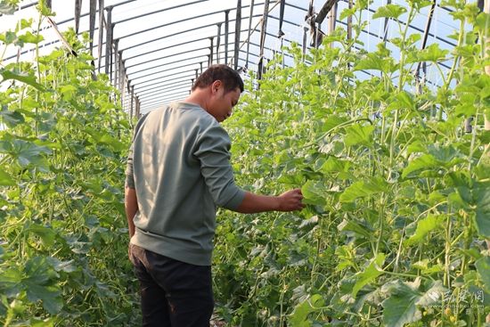 “眼看著天氣熱起來(lái)了,草莓大量上市的時(shí)候已經(jīng)過(guò)去了,現(xiàn)在要‘閉棚子’,馬上5月底甜瓜就要上市了?!鞭r(nóng)場(chǎng)主童衛(wèi)國(guó)介紹。