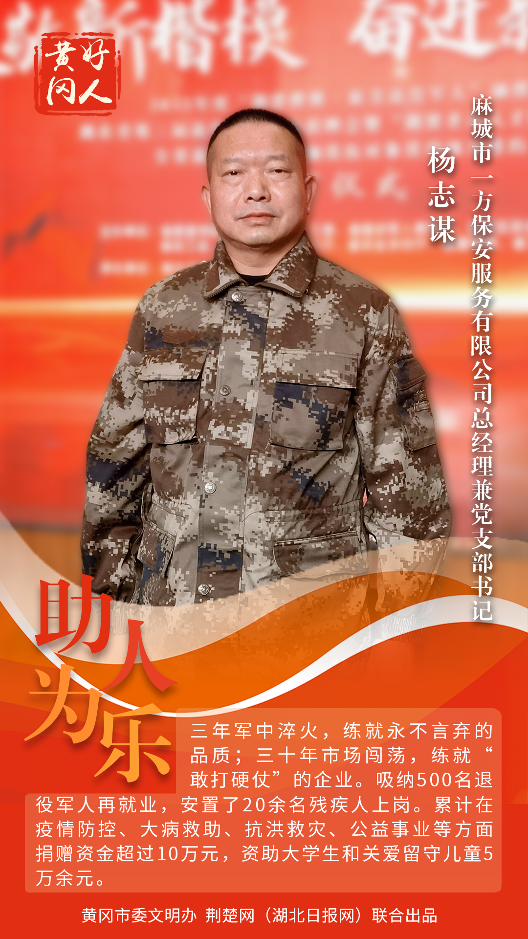 本期“黃岡好人”共有5組好人入選。他們中有“助人為樂、樂善好施”的陳光明;有“敢打硬仗、熱衷公益”的楊志謀;有“危難時(shí)刻顯身手”的杜友福;有“海歸博士變身田間耕夫”的潘新星;有“35年堅(jiān)守,照顧殘障村民如至親”的朱自學(xué)、王桂珍夫婦。