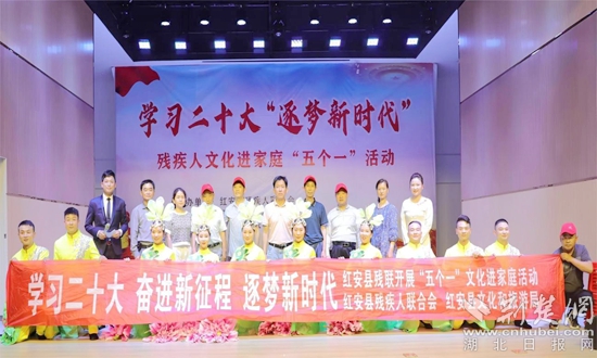 紅安縣殘聯(lián)理事長阮俊介紹,開展"殘疾人文化進(jìn)家庭"五個(gè)一"系列活動(dòng),是為了幫助殘疾人走出家門,融入社會,共享社會文明和經(jīng)齊發(fā)展成果,不斷豐富殘疾人精神文化生活,進(jìn)一步教育和引導(dǎo)了廣大殘疾人堅(jiān)定信念,提高殘疾人獲得感和幸福感。