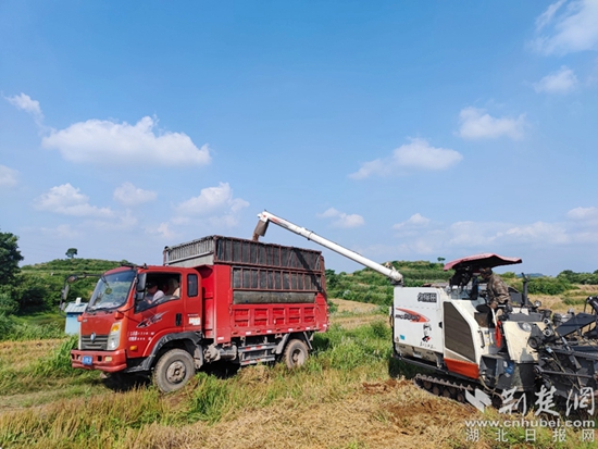 荊楚網(wǎng)(湖北日報網(wǎng))訊(通訊員 彭鑫春)又是一年收麥忙,麥浪滾滾滿地黃。近日,在碧石渡鎮(zhèn)樟樹嶺村,四臺收割機正在田間穿梭,留下豐收的“軌跡”,麥稈化成碎茬后迅速返田,拉開了小麥開鐮收獲的序幕。