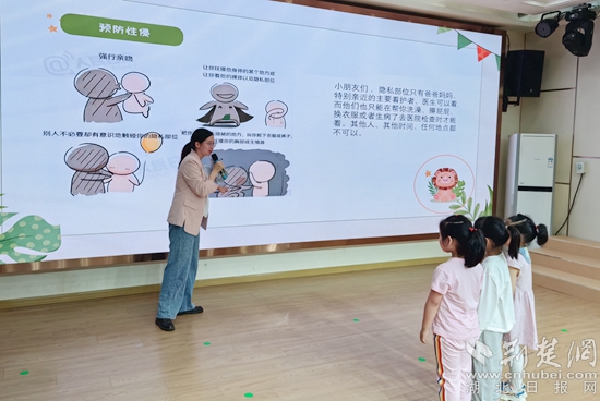 活動(dòng)中,杜航用一些發(fā)生在身邊鮮活、真實(shí)的典型事例,通俗易懂、深入淺出地講解了《未成年人保護(hù)法》中“家庭保護(hù)”“學(xué)校保護(hù)”“社會(huì)保護(hù)”和“司法保護(hù)”的相關(guān)內(nèi)容。用幼兒容易理解的小視頻和故事進(jìn)行防性侵、防拐騙、防溺水等方面的安全教育,機(jī)智的問答互動(dòng),讓孩子們在歡聲笑語中學(xué)到了知識,懂得了如何保護(hù)自己。