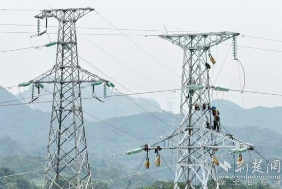 荊楚網(wǎng)(湖北日?qǐng)?bào)網(wǎng))訊(通訊員 周燁任 曹浩)6月12日,在黃石陽新縣富陽公路和黃陽公路沿途110千伏宋竹線輸電線路改造現(xiàn)場,電力工人站在高高的鐵塔上,頭頂驕陽展放導(dǎo)線,全力迎戰(zhàn)夏季用電高峰。