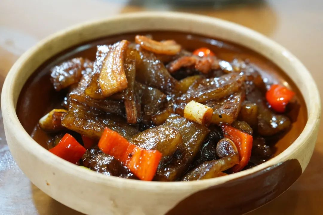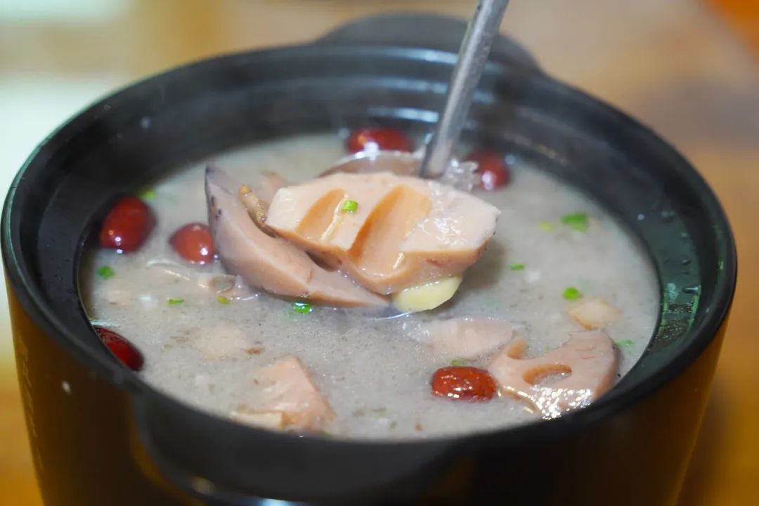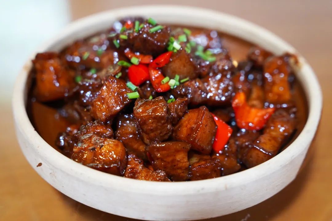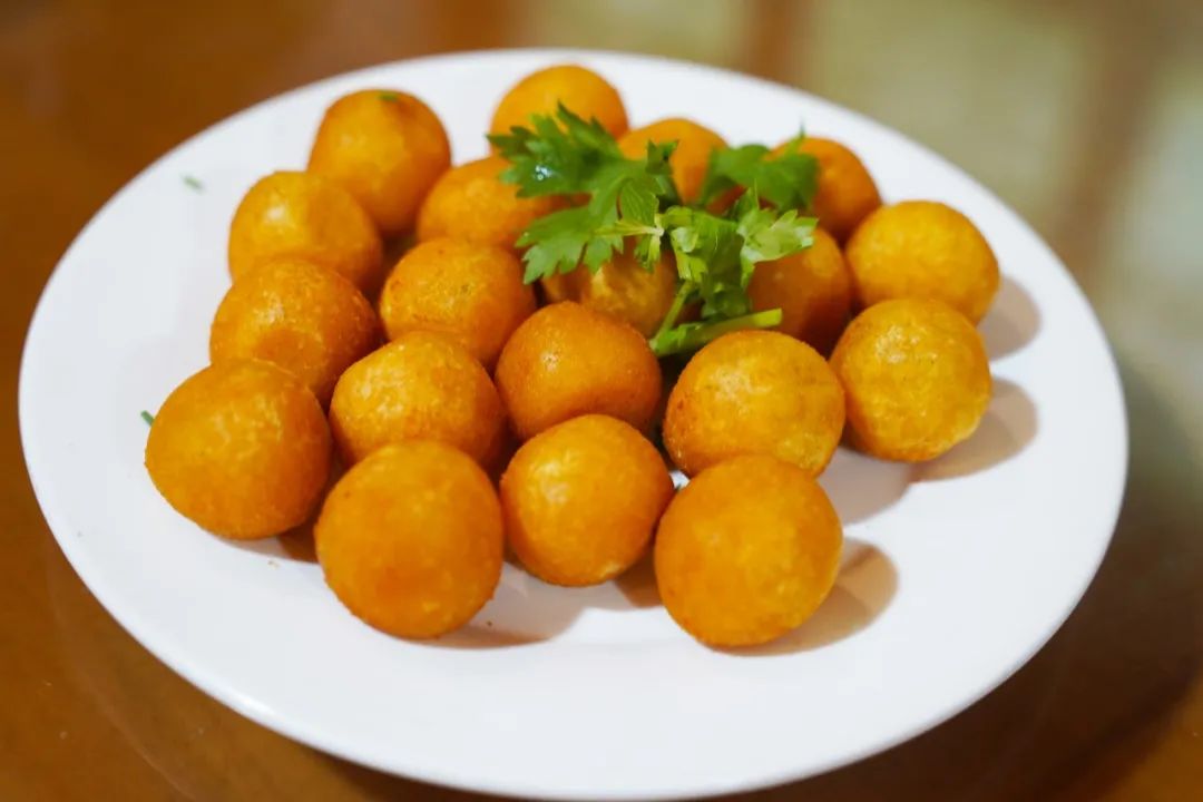 金黃酥脆的炸藕夾中間裹著肉香燉過(guò)的紅燒肉口感滑嫩不粘膩