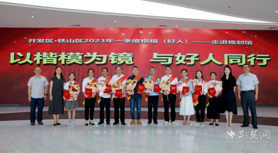 當(dāng)天,開發(fā)區(qū)黨工委·鐵山區(qū)委文明辦組織該區(qū)一季度評選出的10名區(qū)級楷模(好人)走進(jìn)市規(guī)劃館,用實(shí)際行動禮遇身邊好人。