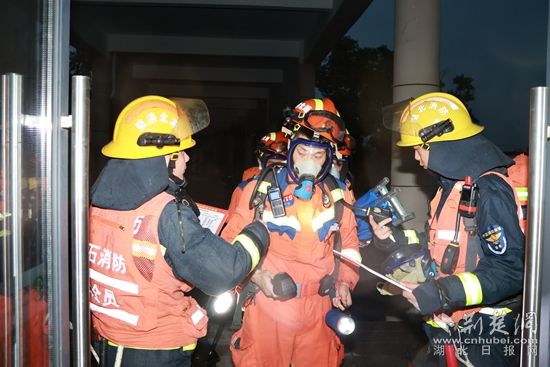 荊楚網(wǎng)(湖北日報(bào)網(wǎng))訊(通訊員 寧靜)“緊急通知!緊急通知!醫(yī)院門診樓5樓發(fā)生火災(zāi),‘火勢’正在蔓延,現(xiàn)啟動(dòng)火災(zāi)緊急疏散!請盡快撤離!”伴隨著陣陣報(bào)警聲響起,數(shù)輛消防車聚集……7月8日晚,一場高層建筑滅火救援夜間實(shí)戰(zhàn)演練在黃石市中心醫(yī)院黃金山院區(qū)拉開帷幕。
