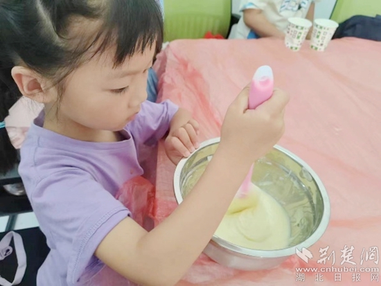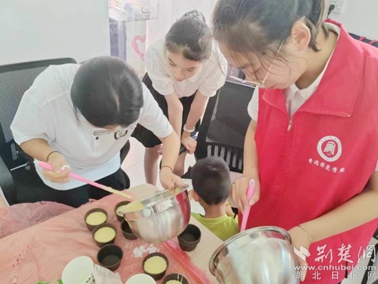荊楚網(wǎng)(湖北日?qǐng)?bào)網(wǎng))訊(記者陶輝 通訊員 黃知樂(lè) 馮鶴林 李佳佳)7月10日,記者來(lái)到黃州區(qū)路口社區(qū)暑期社會(huì)實(shí)踐點(diǎn),遠(yuǎn)遠(yuǎn)地就聞濃郁的香味。青春黃師服務(wù)隊(duì)熠夢(mèng)小隊(duì)的志愿者們正和小朋友們一起制作蛋糕,現(xiàn)場(chǎng)其樂(lè)融融、歡聲笑語(yǔ)此起彼伏。