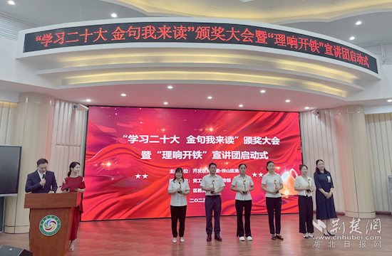 荊楚網(wǎng)(湖北日?qǐng)?bào)網(wǎng))訊(記者 呂鑒蕾 通訊員 張燦華 胡娜)7月13日上午,黃石開(kāi)發(fā)區(qū)·鐵山區(qū)“學(xué)習(xí)二十大 金句我來(lái)讀”頒獎(jiǎng)大會(huì)暨“理響開(kāi)鐵”宣講團(tuán)啟動(dòng)式在黃金山第五小學(xué)舉行。