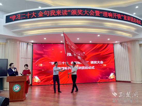 活動(dòng)現(xiàn)場(chǎng),出席領(lǐng)導(dǎo)為獲獎(jiǎng)嘉賓頒發(fā)最佳創(chuàng)意獎(jiǎng)、最佳搭檔獎(jiǎng)、最佳作品獎(jiǎng)、最佳人氣獎(jiǎng)、最佳組織獎(jiǎng),激勵(lì)他們將黨的二十大精神記于心,踐于行,踔厲奮發(fā),篤行不怠,并共同見(jiàn)證了“理響開(kāi)鐵”宣講團(tuán)授旗儀式。