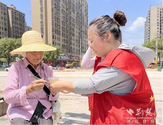荊楚網(wǎng)(湖北日報網(wǎng))訊(通訊員 張瑤)7月入伏以來,連日高溫,酷暑難耐。為緩解燥熱天氣,關(guān)愛轄區(qū)內(nèi)居民身心健康與人身安全,鄂城區(qū)花湖鎮(zhèn)楊家湖社區(qū)在楊家湖菜市場開展“酷暑送清涼,安康伴眾行”活動,幫助轄區(qū)內(nèi)居民解暑降溫。
