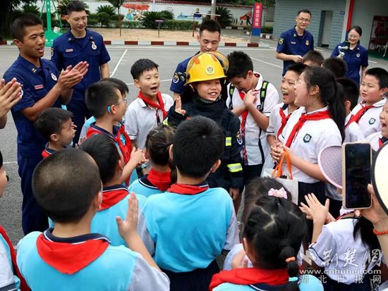 荊楚網(wǎng)(湖北日?qǐng)?bào)網(wǎng))訊(通訊員 張承妹)25日,黃石市消防救援支隊(duì)下陸大隊(duì)舉辦營(yíng)區(qū)“開放日”活動(dòng),來(lái)自白馬山小學(xué)和有色小學(xué)的70余名小朋友在老師陪同下走進(jìn)營(yíng)區(qū),暢享了一次特殊的暑期“消防之旅”。