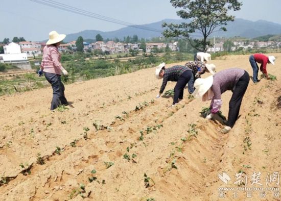 今年3月20日,該公司與該鎮(zhèn)毛畈村簽訂農(nóng)業(yè)訂單,按照“三統(tǒng)一分”(統(tǒng)一供苗、統(tǒng)一技術(shù)指導(dǎo)、統(tǒng)一保底價回收,分戶種植)模式,在毛畈村建立300畝紅苕種植基地。