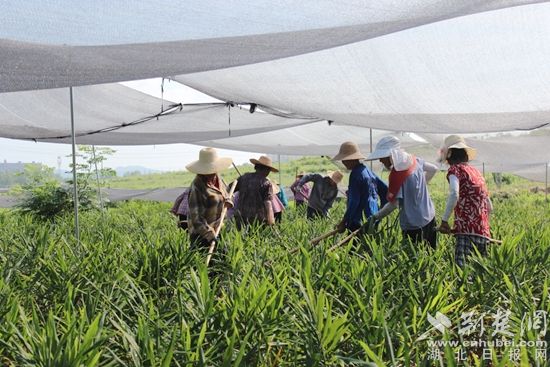 荊楚網(wǎng)(湖北日報網(wǎng))訊(通訊員 葛昆樂 馬先禮)8月4日上午,位于鄂城區(qū)汀祖鎮(zhèn)劉顯村的鄂城黃姜育種示范基地里,120畝黃姜長勢喜人,十多名工作人員正在進行田間管理,為黃姜施肥、鋤草。