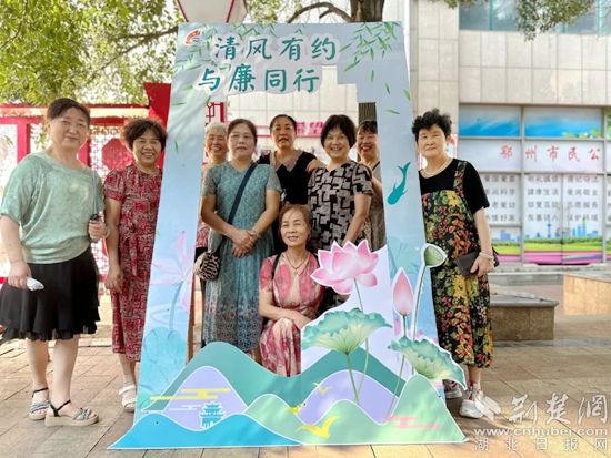 在“沉浸式”聽完講解員的講解后,居民朋友在“清風(fēng)有約,與廉同行”廉潔打卡點拍照留念。