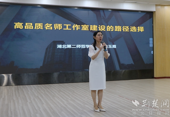 開(kāi)班儀式結(jié)束后,湖北第二師范學(xué)院教授、基礎(chǔ)教育研究中心主任、特級(jí)教師、湖北名師涂玉霞作題為《高品質(zhì)工作室建設(shè)的路徑選擇》的主題講座。她圍繞工作室文化建設(shè)、運(yùn)行方式、成果彰顯三大塊,結(jié)合名師工作室積累的豐富案例、豐厚經(jīng)驗(yàn)和豐碩成果,系統(tǒng)地分享了高品質(zhì)工作室建設(shè)路徑、策略與方法。