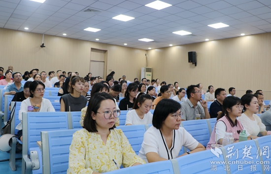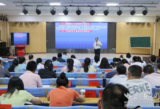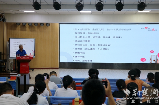 8月16日上午,黃石八中總校長(zhǎng)、特級(jí)教師、正高級(jí)教師郭茂榮作題為《務(wù)教育之本 悟成長(zhǎng)之道—教師工作坊建設(shè)的實(shí)踐與思考》的主題講座。他通過(guò)成長(zhǎng)經(jīng)歷和典型案例,運(yùn)用風(fēng)趣的語(yǔ)言深刻詮釋了“立德樹(shù)人是教育之本,知其心是教師之本,悟其道是成長(zhǎng)之要”,還交流了教師工作坊建設(shè)、運(yùn)行、管理、評(píng)價(jià)等方面的經(jīng)驗(yàn)。