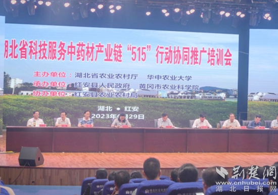今年?6月28日,湖北省科技服務(wù)中藥材產(chǎn)業(yè)鏈“515”行動(dòng)協(xié)同推廣培訓(xùn)會(huì)在紅安縣潤(rùn)康農(nóng)業(yè)發(fā)展有限公司召開。