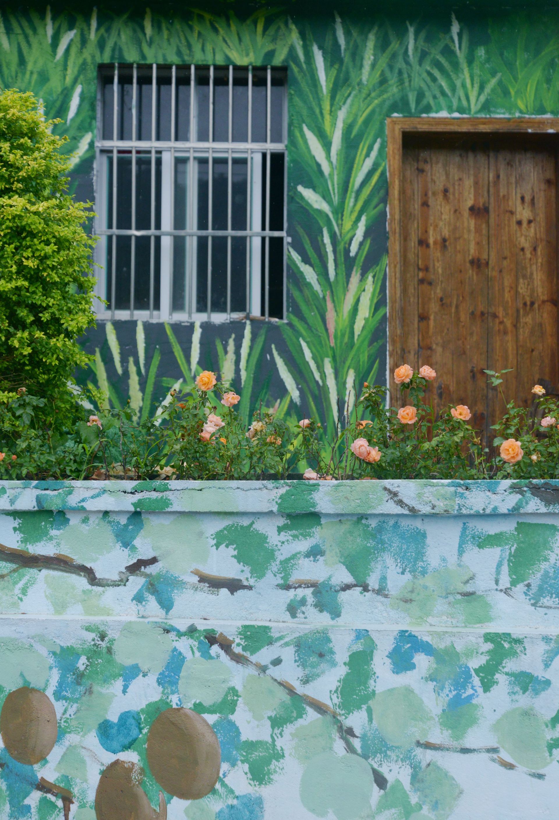 沿街綠化創(chuàng)意滿滿,映照著村居民房壁畫。