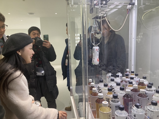 采風團一行走進元氣森林咸寧工廠,通過沉浸式觀光通道,一行人零距離感受生產(chǎn)過程,只見飲料生產(chǎn)線正高速運轉(zhuǎn),一瓶瓶飲料飛速被裝進箱子里,統(tǒng)一打包進入倉庫。