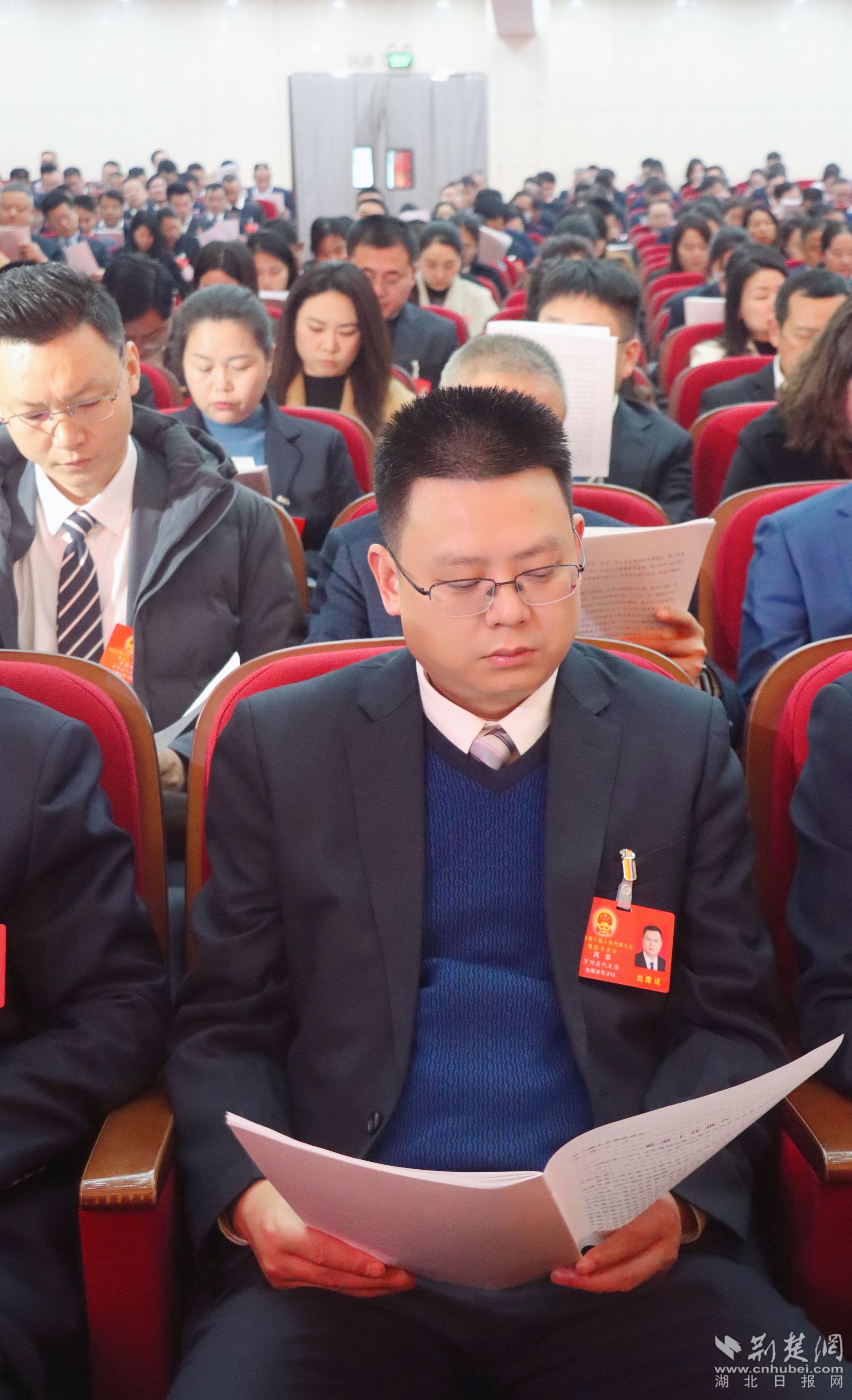 代表團(tuán)成員認(rèn)真聽取報(bào)告。胡小軍 攝