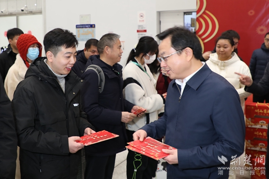“感謝大家一年來為鄂州發(fā)展作出的貢獻,這次通過免費送建設者返鄉(xiāng)等多種舉措,希望能讓大家感受到鄂州這座城市的溫度?!痹跈C場航站樓一樓大廳,湖北省總工會領導及鄂州市領導向外來務工人員代表贈送裝有鄂州特產(chǎn)的年貨禮包,并致以誠摯美好的新春祝福。