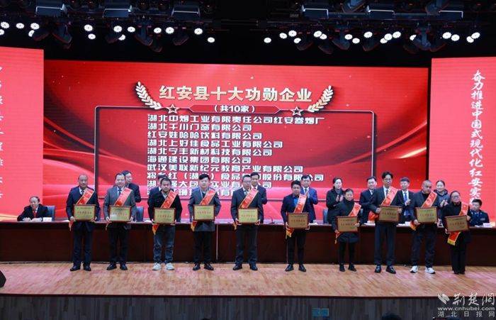 “一花興一業(yè),一企帶百企。助力建筑業(yè)成為紅安乃至黃岡首個產(chǎn)值過200億元的支柱產(chǎn)業(yè)。”當(dāng)天上午,海通建設(shè)集團有限公司榮獲紅安縣十大功勛企業(yè)。該公司負(fù)責(zé)人李櫟戴著紅綬帶,上臺接受表彰,開心喜悅之情洋溢在他臉上。
