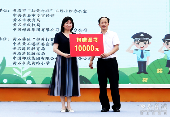 中國郵政集團有限公司黃石城區(qū)分公司副總經(jīng)理柯海平表示,將積極參與“掃黃打非”工作,落實郵政快遞業(yè)“收寄驗視、實名登記、過機安檢”三項制度,加大“畫像法”的宣貫力度,嚴防非法出版物流入寄遞渠道;積極宣傳“掃黃打非”有關(guān)政策法規(guī),引導(dǎo)告知廣大群眾不得寄遞非法有害出版物,共同助力未成年人健康成長,并向黃石市武黃路小學(xué)捐贈1萬元圖書。