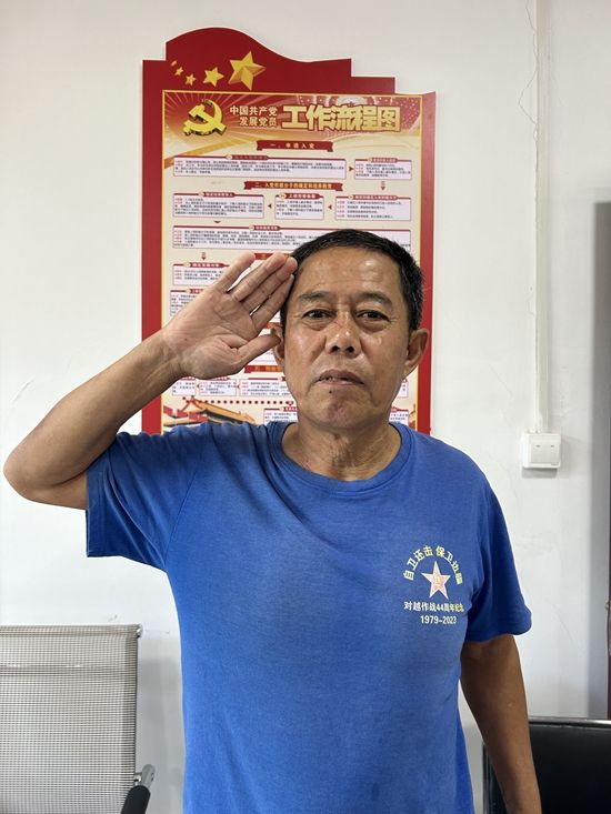 只是,他身上那件藍(lán)色的“對(duì)越作戰(zhàn)44周年紀(jì)念”T恤,似乎在無(wú)聲提醒著老兵言不由衷的心事。