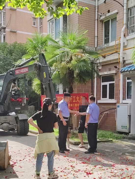 當天上午,正當黃石天方小區(qū)某單元住戶們慶祝加裝電梯開工大吉之時,該單元一樓住戶盧某跳了出來,以對補償不滿意等為由,大鬧施工現(xiàn)場。社區(qū)工作人員、居民雖多次上前勸阻,但盧某均不予理會。萬般無奈之下,施工方只得報警求助。民警現(xiàn)場了解情況后,將盧某帶離施工現(xiàn)場,并進行了法律教育和宣傳引導。