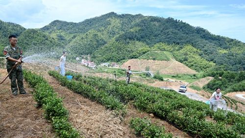 “近段時間高溫干旱,姜書記一直帶領(lǐng)我們到茶園抗旱保苗,他在部隊當(dāng)班長那種雷厲風(fēng)行的作風(fēng)一點沒變?!卑派酱濉皟晌睅酌嘧映蓡T由衷欽佩道。