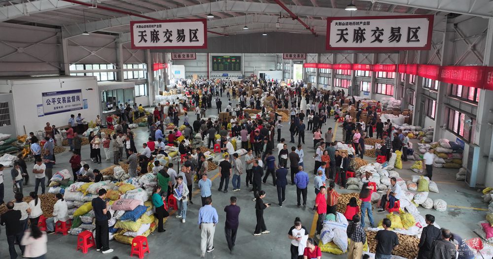 2023年10月15日,大別山道地藥材產(chǎn)業(yè)園交易市場在九資河鎮(zhèn)鳴鑼開市,當日成交額突破2500萬元,吸引了2000多名本地藥農(nóng)進場售賣,400多名客商從陜西、云南、安徽等地慕名而來。