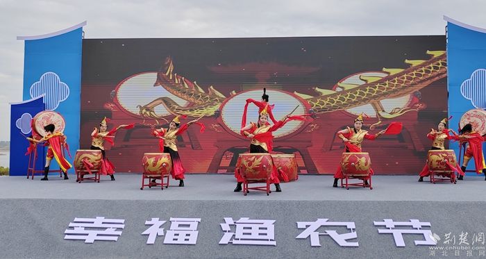 在漁農(nóng)文藝觀賞區(qū),開幕儀式上頒發(fā)了陶店鄉(xiāng)農(nóng)業(yè)發(fā)展顧問和電商發(fā)展顧問的聘書,并舉行了湖北淼燁生態(tài)農(nóng)業(yè)有限公司巴河魚丸項(xiàng)目的簽約儀式。舞臺(tái)上,身著統(tǒng)一服裝的表演者們揮舞著鼓槌,敲打著鑼鼓,喜慶的氛圍讓現(xiàn)場觀眾心潮澎湃,掌聲雷動(dòng)。