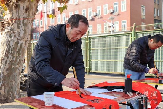 書協(xié)志愿者寫春聯(lián)。阮瓊 攝