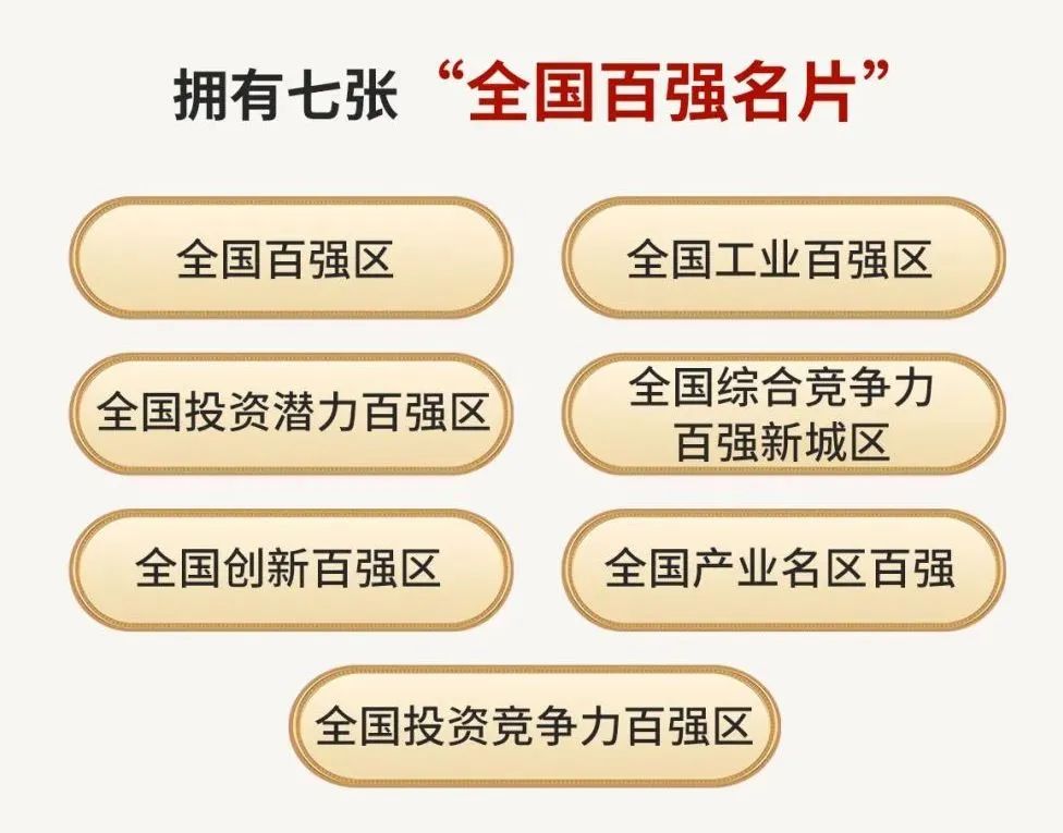 首次入選全國創(chuàng)新百強區(qū)、全國產(chǎn)業(yè)名區(qū)百強、全國投資競爭力百強區(qū),已擁有七張全國“百強名片”。