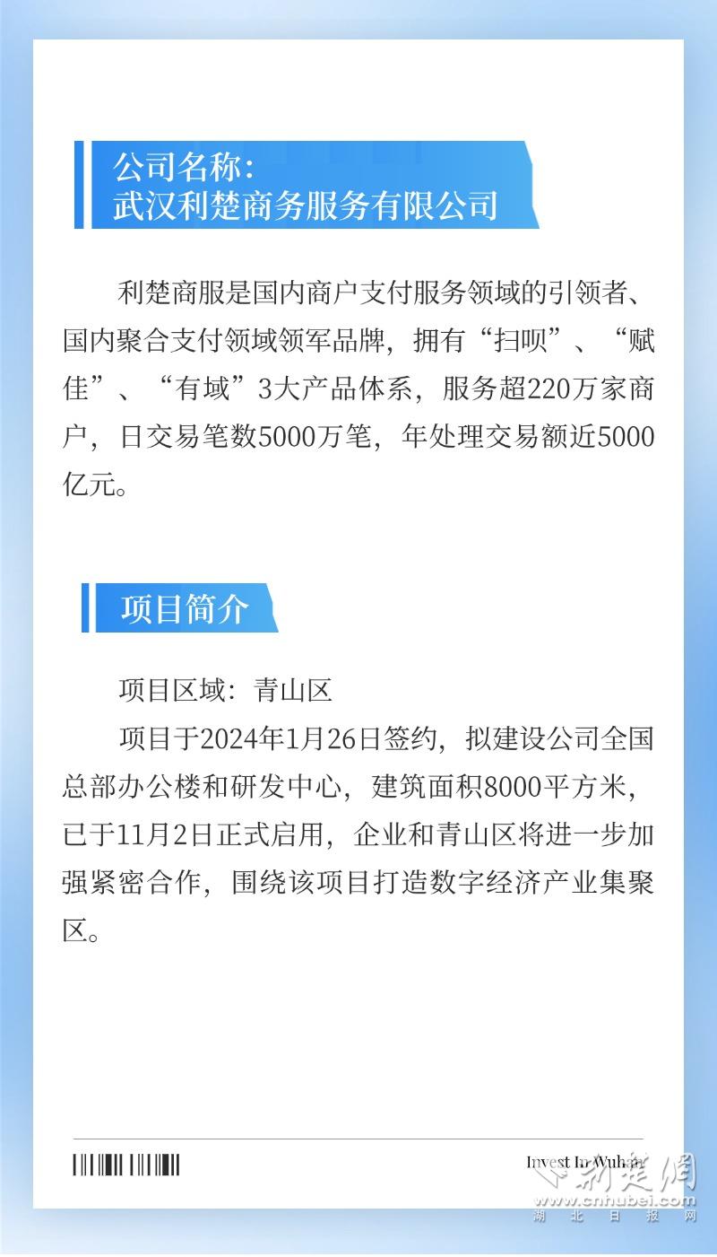 荊楚網(wǎng)(湖北日?qǐng)?bào)網(wǎng))訊(通訊員 謝家奇 陳丹)2024年,武漢招商引資活力迸發(fā),一大批重點(diǎn)項(xiàng)目落地有聲。推動(dòng)傳統(tǒng)產(chǎn)業(yè)轉(zhuǎn)型升級(jí),培育壯大新興產(chǎn)業(yè)、未來產(chǎn)業(yè)齊頭并進(jìn),不斷擦亮“投資武漢”品牌,以高水平招商引資賦能武漢高質(zhì)量發(fā)展。