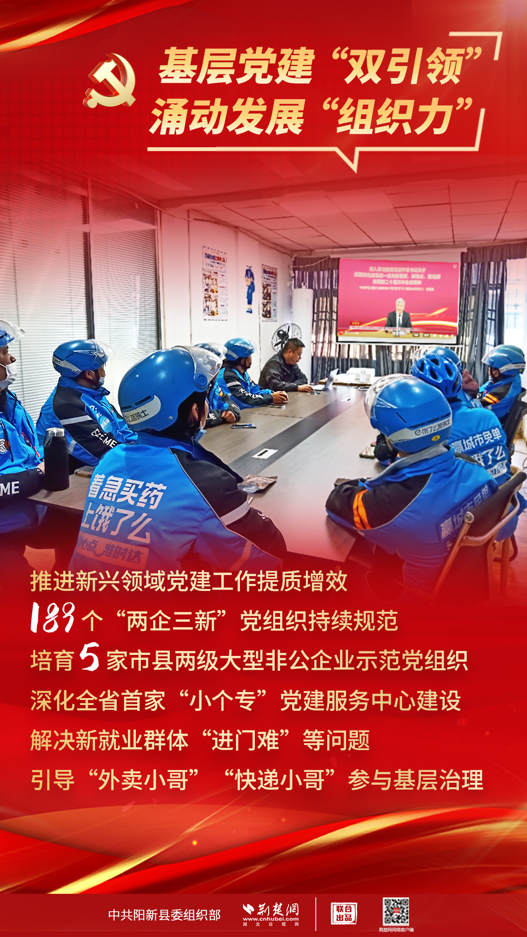 荊楚網(wǎng)(湖北日報(bào)網(wǎng))訊(記者 田城、姜夢瑤 通訊員 柯陽)記者1月24日從陽新縣委組織部獲悉,剛剛過去的2024年,圍繞推動高質(zhì)量發(fā)展,陽新縣堅(jiān)持抓基層、打基礎(chǔ)、固基本,深入推進(jìn)抓黨建促鄉(xiāng)村振興、黨建引領(lǐng)基層治理,統(tǒng)籌推進(jìn)各領(lǐng)域黨建工作,為全縣經(jīng)濟(jì)社會高質(zhì)量發(fā)展提供了源源不絕的組織動力。