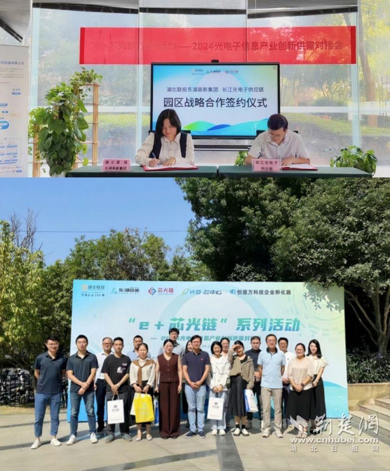 東湖高新集團與湖北長江光電子簽訂園區(qū)戰(zhàn)略合作協(xié)議,并共同策劃出品“e+芯光鏈”活動。通訊員供圖