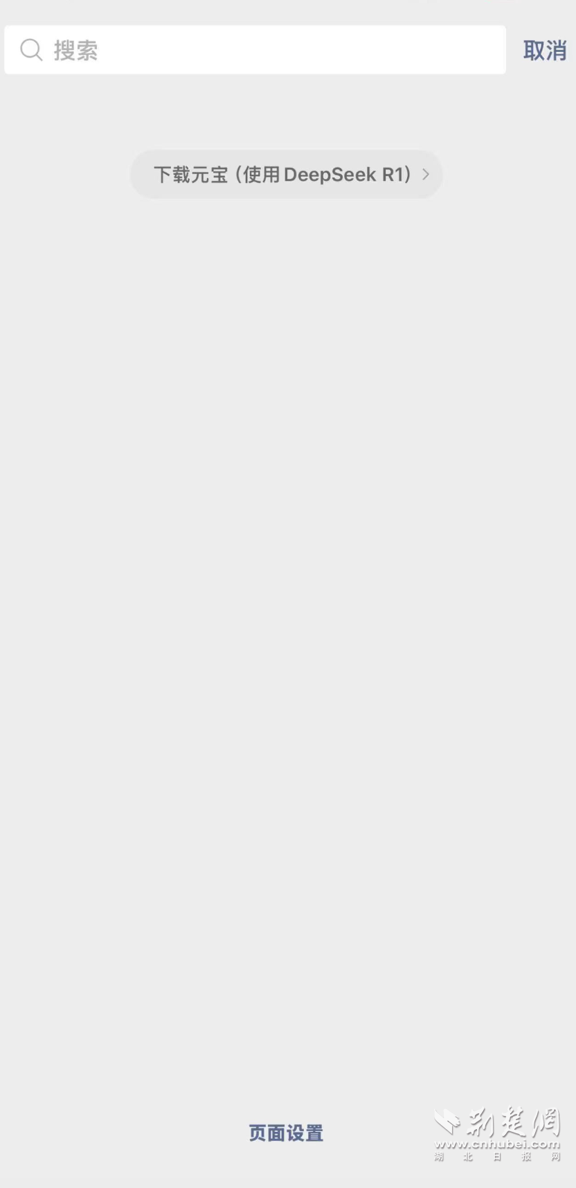 從今天開始,尚未被灰度到AI搜索的用戶,點擊微信對話框頂部的搜索欄,進入微信搜索,將有機會在頁面中看到“下載元寶(體驗DeepSeek-R1)“。