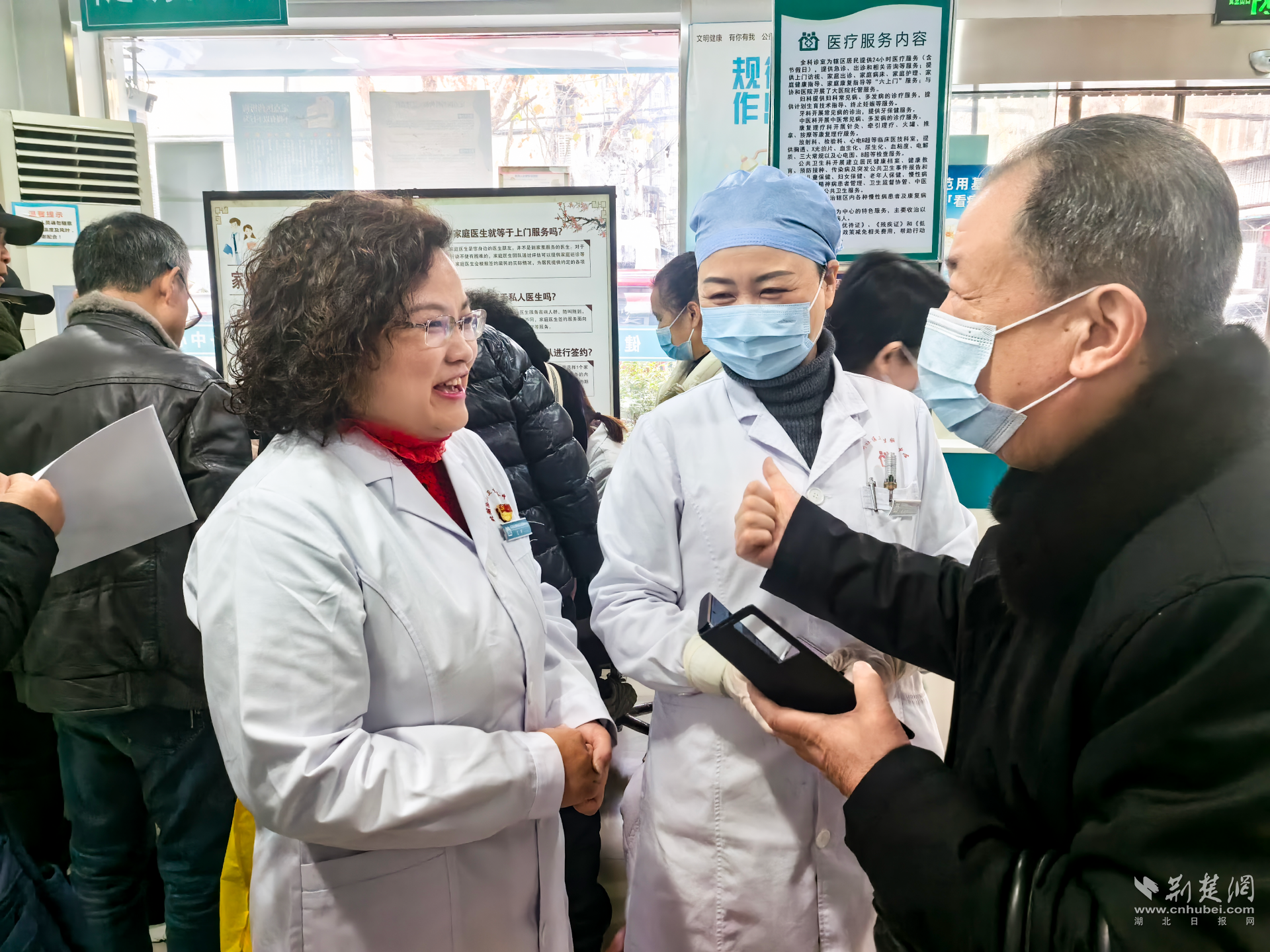武漢市江漢區(qū)北湖街社區(qū)衛(wèi)生服務(wù)中心書記兼主任高暉(左一)