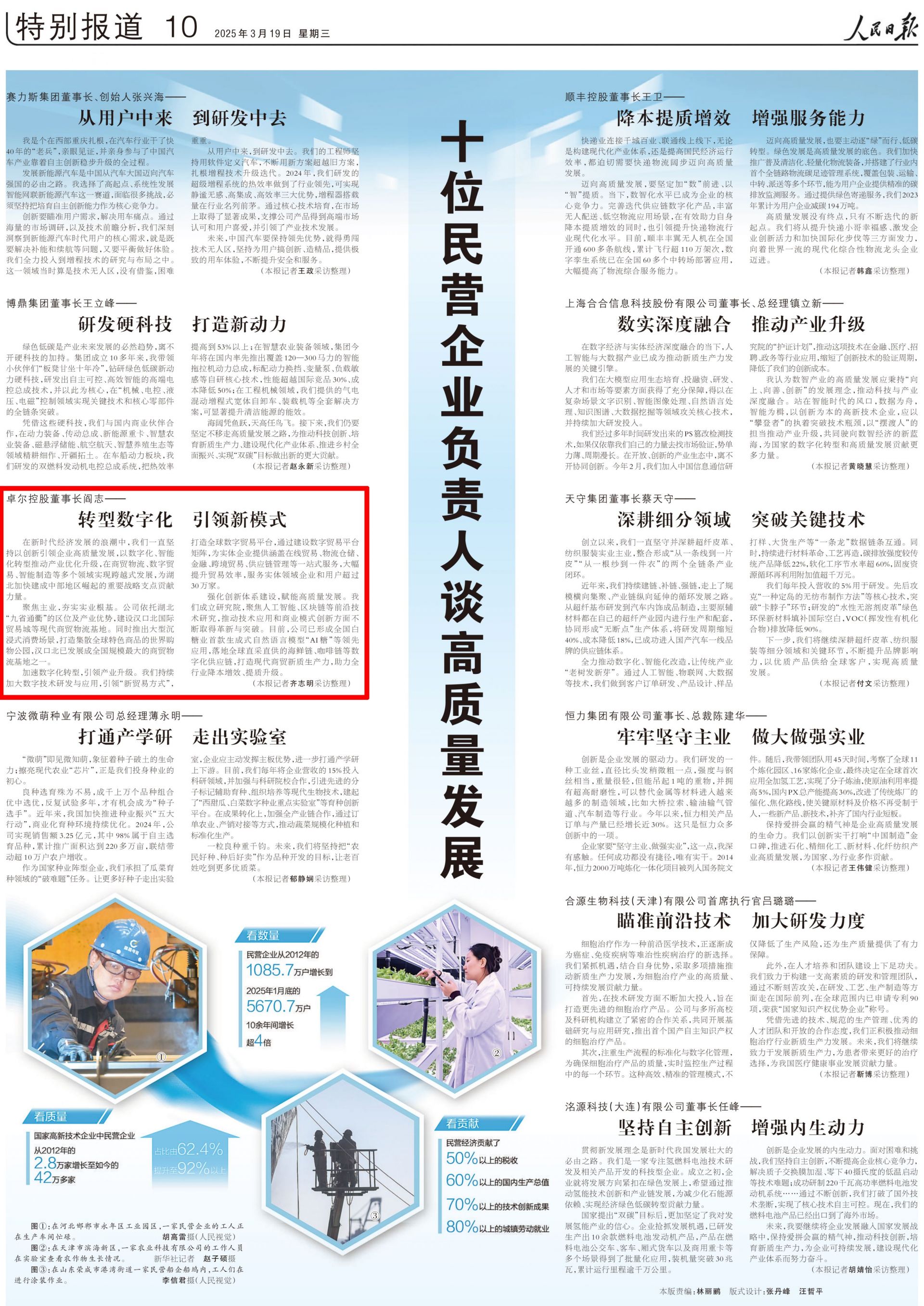 人民日報今推出特別報道《十位民營企業(yè)負(fù)責(zé)人談高質(zhì)量發(fā)展》,湖北卓爾控股董事長閻志接受采訪——