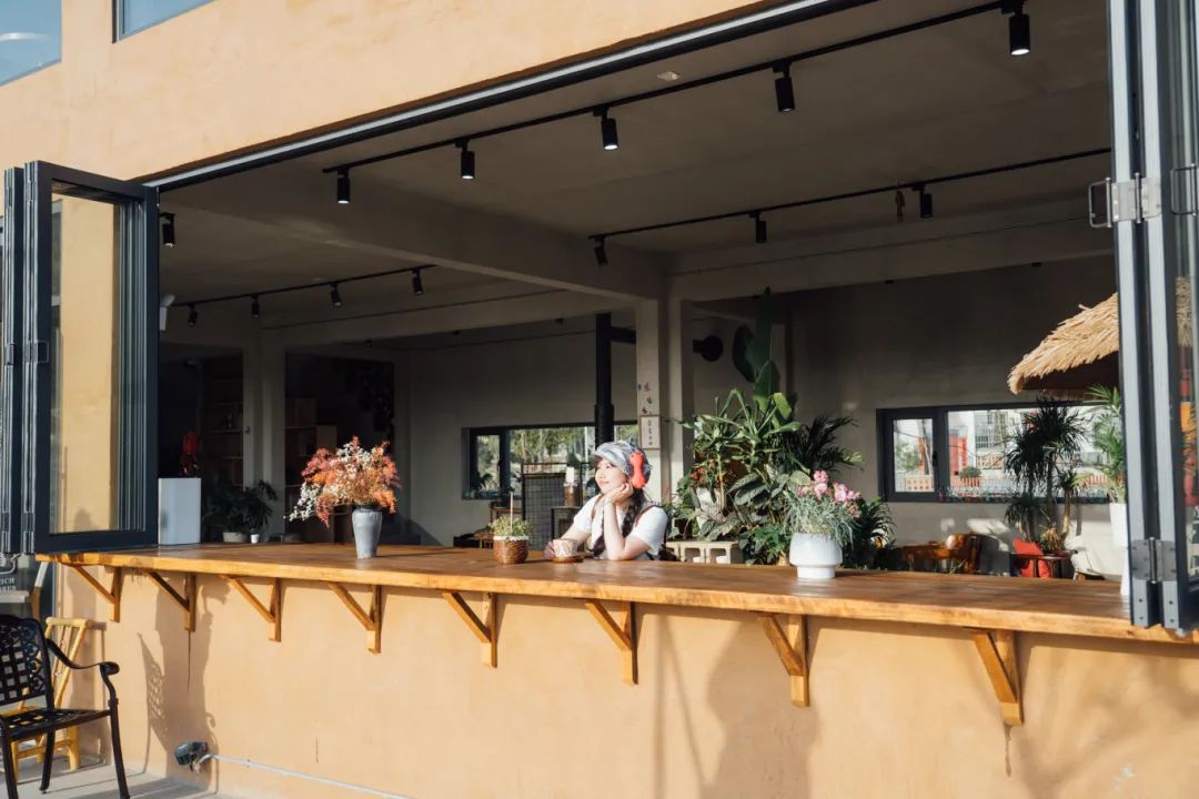 靠窗的吧臺也十分吃香,時不時有年輕的女孩端起咖啡,輪番坐上吧臺椅拍照,背景是屋外的稻田與花海,非常“出片”。