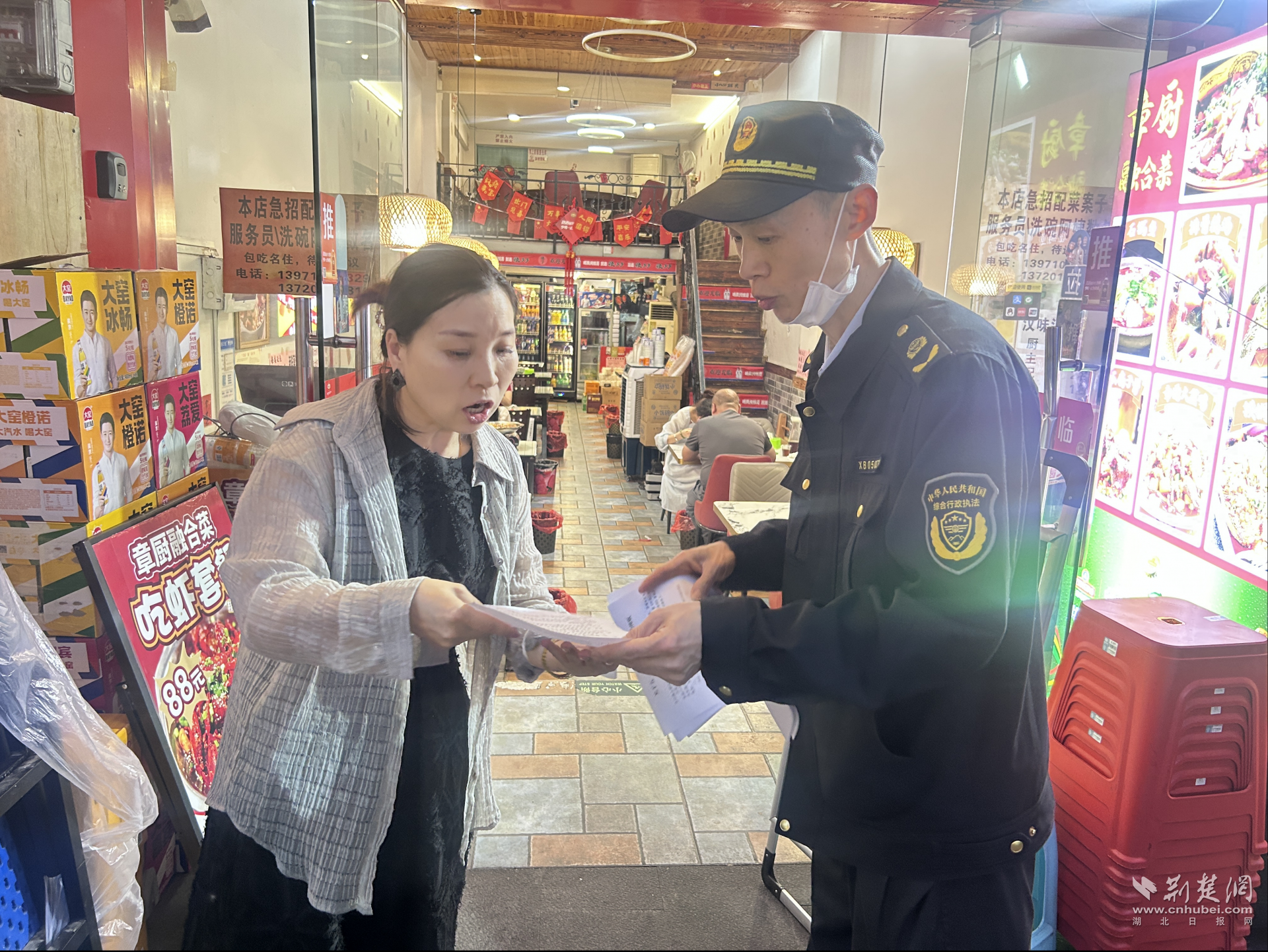 黃師傅口中的劉隊(duì)長(zhǎng),是大智街道綜合執(zhí)法中心的隊(duì)員劉海濤。自大智街道設(shè)立吉慶街外擺規(guī)范管理區(qū)域以來(lái),這條匯聚了火鍋、燒烤、鹵味的特色美食街區(qū),就成了劉海濤日常巡查管理的“一畝三分地”。