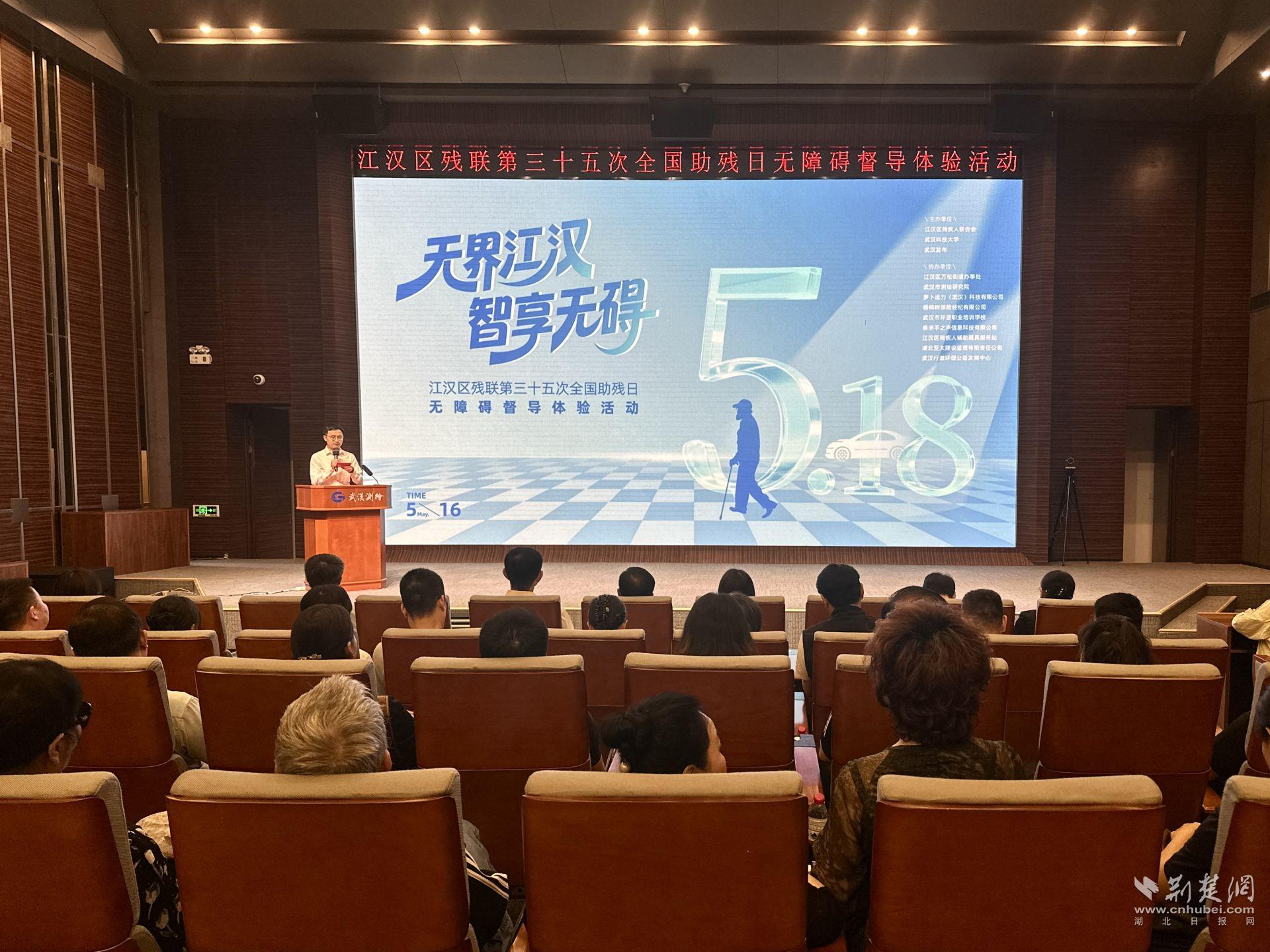 當(dāng)天,在武漢市江漢區(qū)殘聯(lián)舉辦的“無界江漢 智享無礙”無障礙督導(dǎo)體驗(yàn)活動(dòng)中,專家學(xué)者、人大代表、志愿者與殘疾人代表等百余人共聚一堂,在實(shí)踐中檢驗(yàn)無障礙環(huán)境建設(shè)成果,用沉浸式科技體驗(yàn),助推無障礙環(huán)境建設(shè),提升城市溫度。