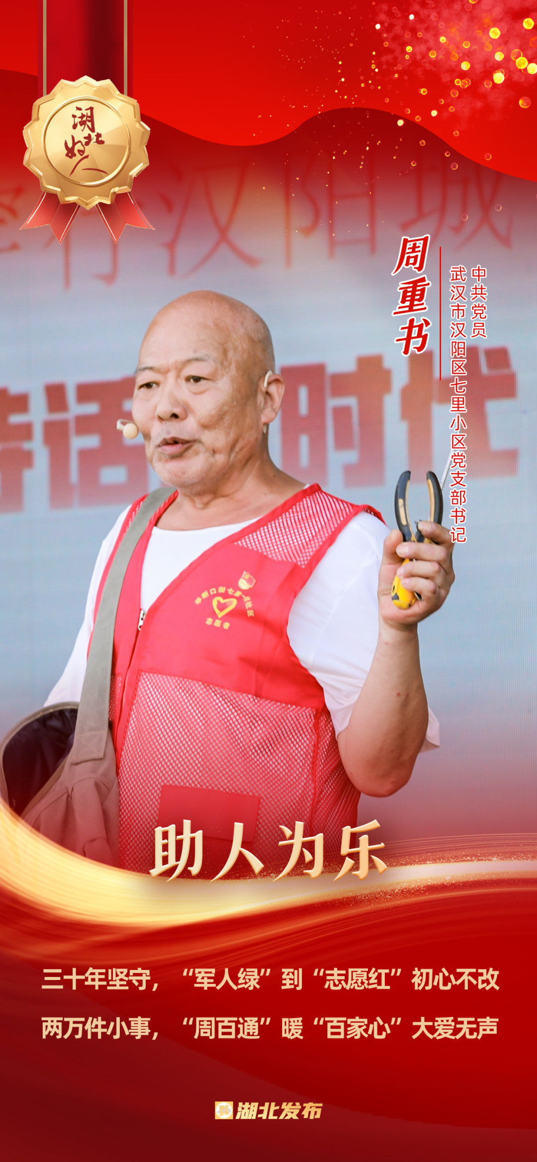 1973年在部隊(duì)入黨,1976年轉(zhuǎn)業(yè)到武漢家具廠,2009年被選為社區(qū)黨委委員,2023年榮獲“武漢楷?!狈Q號(hào)……今年75歲的周重書是一名退伍老黨員,在部隊(duì)曾兩次榮立三等功,在工廠也多次被評為先進(jìn)工作者和模范標(biāo)兵。