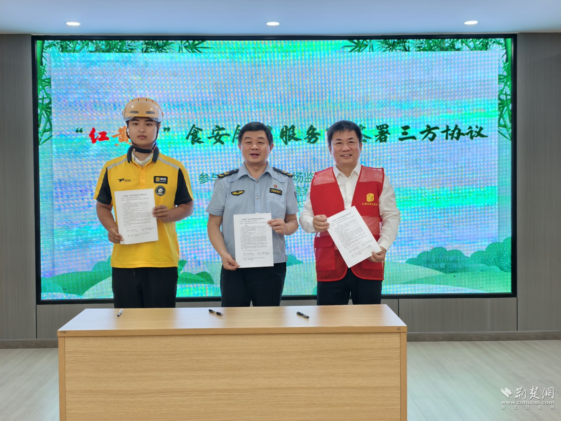 活動現(xiàn)場,江漢區(qū)“紅黃藍”食安鄰里服務隊正式成立,由市場監(jiān)管干部、新就業(yè)群體、社區(qū)志愿者三方共建協(xié)同,首批成員包括美團金家墩站點配送騎手。服務隊將立足居民區(qū),圍繞食品安全宣傳、應急響應、信息聯(lián)動等方面提供志愿支持,為守護“舌尖上的安全”注入多元活力。