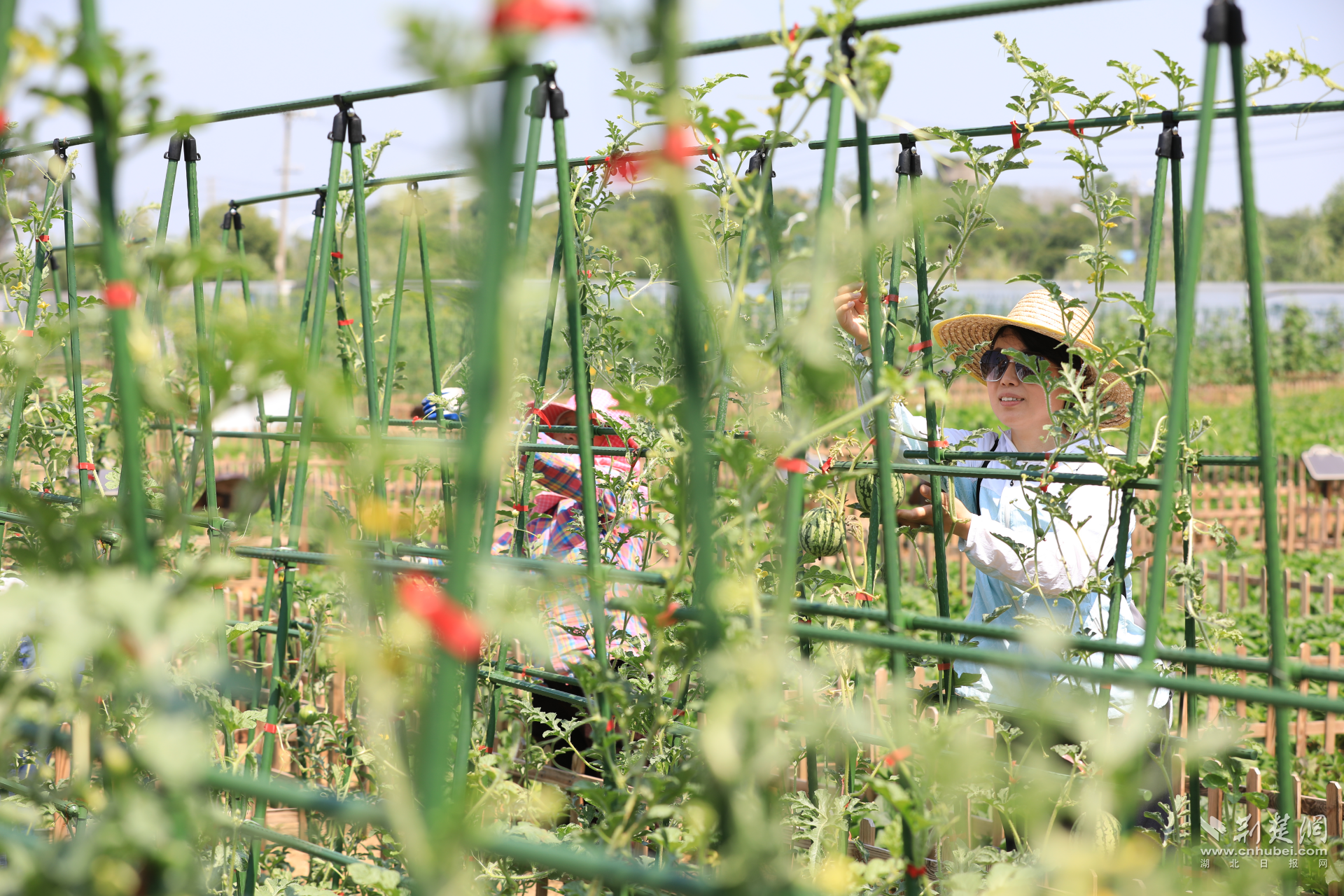 荊楚網(wǎng)(湖北日?qǐng)?bào)網(wǎng))訊(記者 何婧 通訊員 王越 肖莉 攝影 肖敏)“今天實(shí)現(xiàn)黃瓜自由啦!”6月5日,市民王女士來到武漢經(jīng)開區(qū)東荊街武監(jiān)高速旁的共享菜地,采摘此前認(rèn)領(lǐng)菜地中成熟的黃瓜、西紅柿等農(nóng)產(chǎn)品。