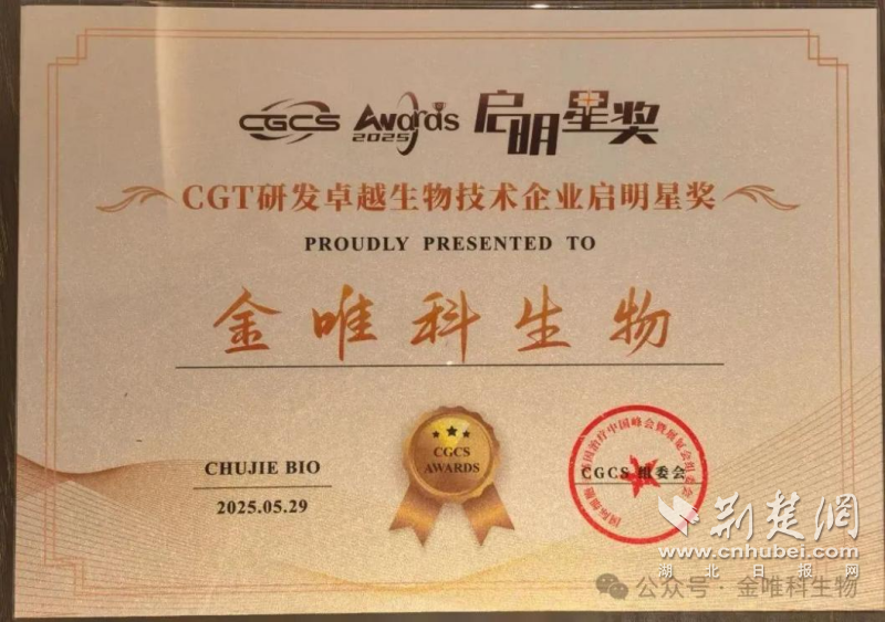 荊楚網(wǎng)(湖北日報網(wǎng))訊(通訊員 董高宣)近日,第六屆國際細胞與基因治療中國峰會(CGCS 2025)在南京揚子江國際會議中心召開,同期舉行了CGCS Awards“啟明星獎”頒獎盛典。東湖高新集團投資企業(yè)武漢禾元生物科技股份有限公司(以下簡稱“禾元生物”)因優(yōu)質(zhì)的產(chǎn)品與服務(wù)榮獲“CGT領(lǐng)域可靠原料與試劑供應(yīng)啟明星獎”,另一投資企業(yè)成都金唯科生物科技有限公司(以下簡稱“金唯科”)憑借其在基因治療領(lǐng)域的創(chuàng)新成果榮獲“CGT研發(fā)卓越生物技術(shù)企業(yè)啟明星獎”。